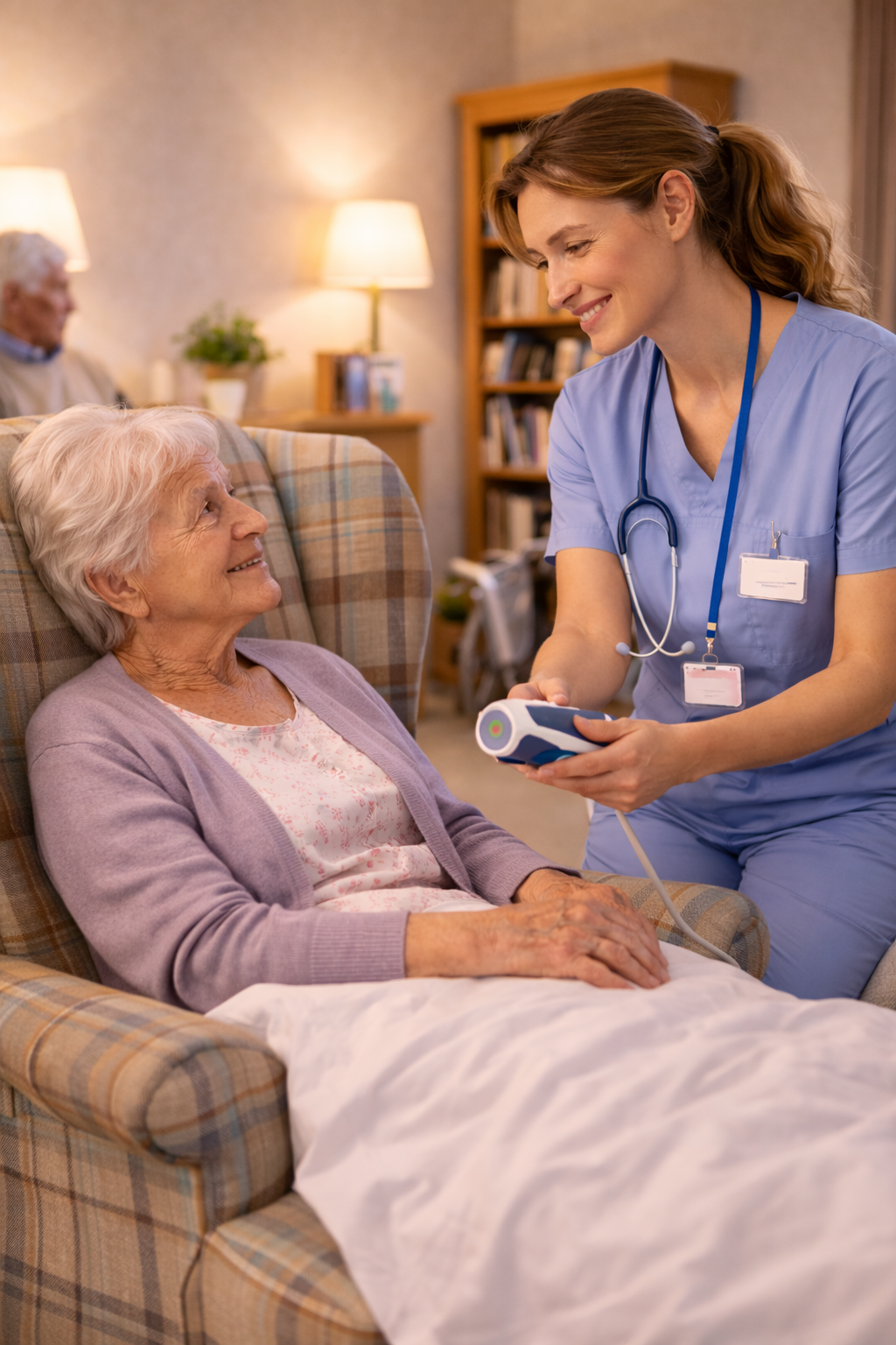 • End-of-life or frail residents → Non-invasive scanning supports comfort-led care, avoiding unnecessary procedures or distressing transfers.