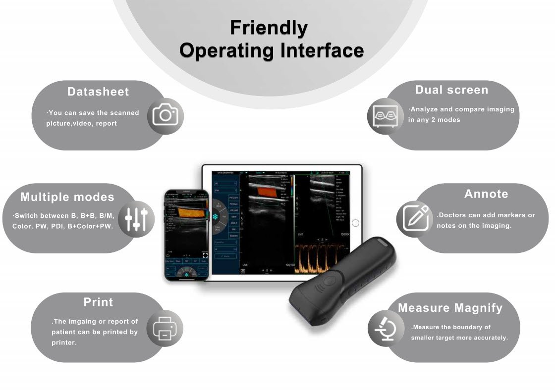 Compatible with Android, iOS, and Windows smartphones, tablets, and PCs, the MX Pro brings professional ultrasound capability to the devices clinicians already use.