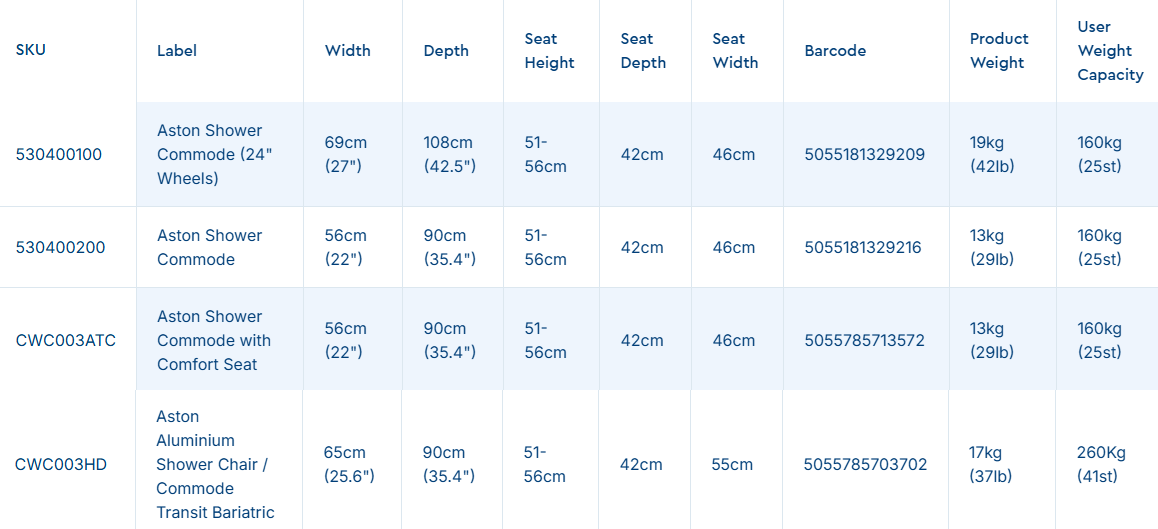 The Aston Shower Commode is a versatile and practical solution designed to support users weighing up to 25st (160kg). It features a moulded seat for enhanced comfort and offers multiple adjustment options to suit individual showering and toileting needs.