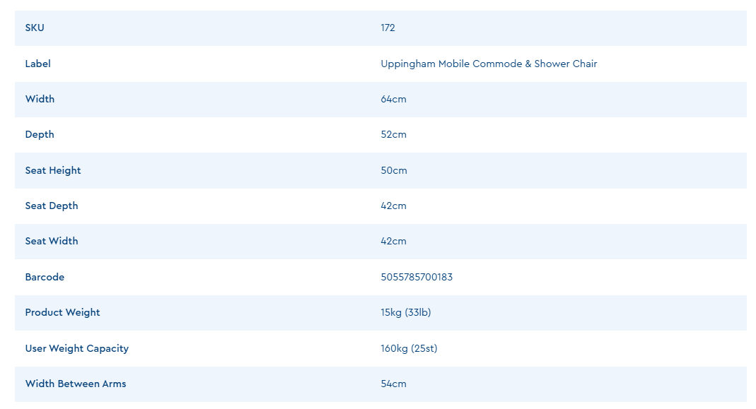 The Uppingham Mobile Commode is a versatile, attendant-propelled shower chair designed to provide comfort, safety, and convenience for users with limited mobility. Its design allows users to be wheeled directly between the toilet and shower, reducing the number of transfers required and minimizing the risks associated with moving and handling.