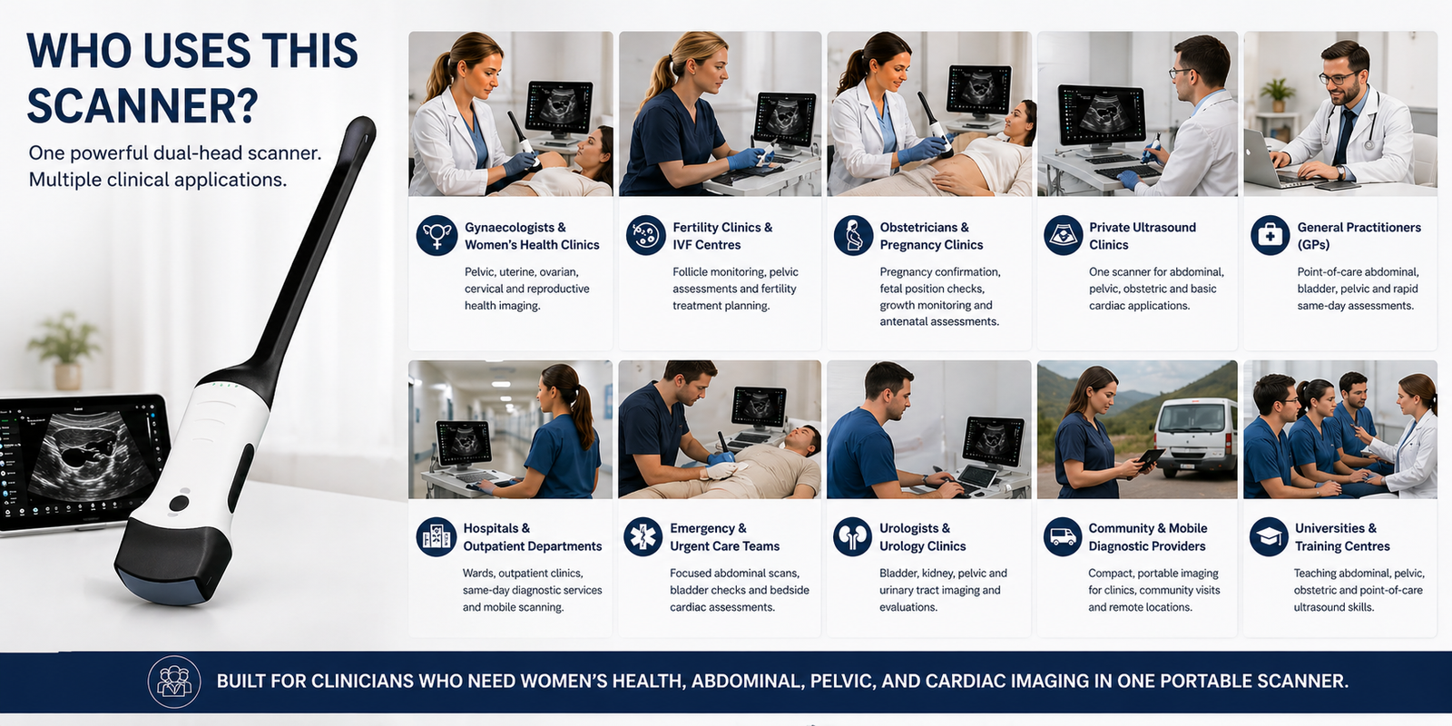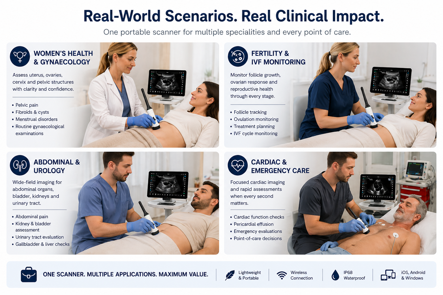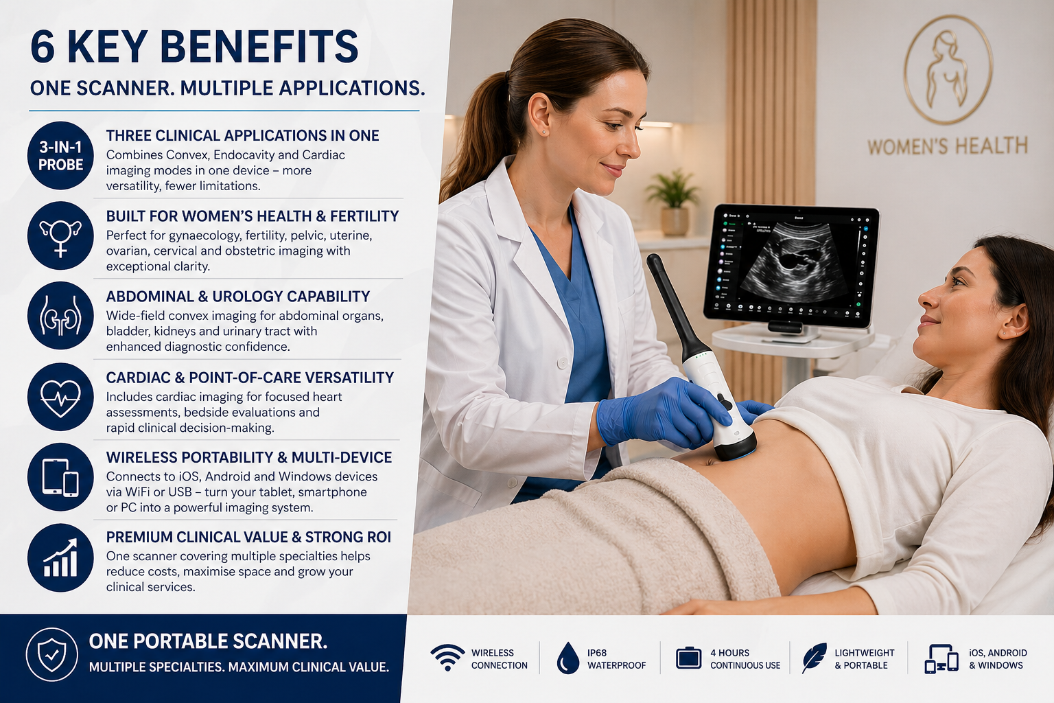 One Portable Scanner for Women’s Health, Abdominal, Pelvic, Cardiac, and Point-of-Care Imaging.